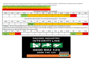 The below charts are provided to help guide participants in understanding the rules for prohibited treatments or administration in the period prior to races/trials.